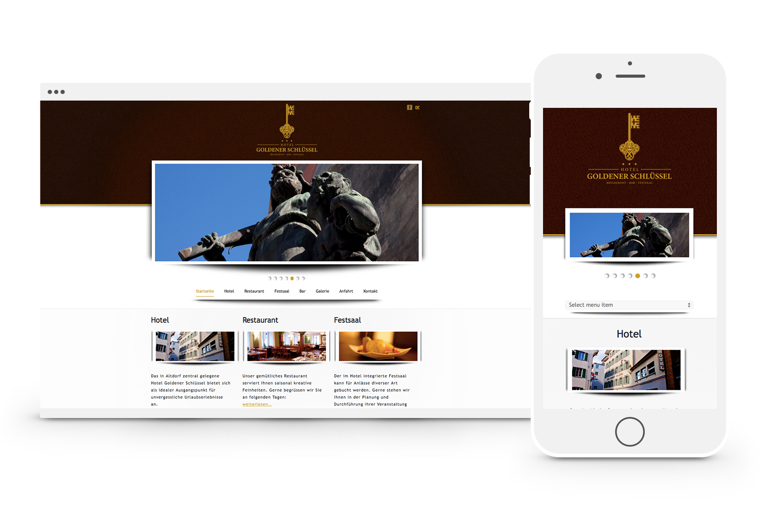 Hotel Goldener Schlüssel Altdorf Auftraggeber HGS Gastro GmbH Arbeiten Corporate Design Logo Briefschaften Website (Responsive) Speisekarte Fotografie Inserate Livesite goldenerschluessel.com